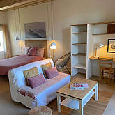Das Ferienhaus „Le Gîte du Couchant“ bietet mit 68 m² Platz für 3-5 Personen. Es wurde von Ihrer Gastgeberin Marie Speth geschmackvoll und sehr gemütlich eingerichtet. Vor allem die sichtbare Steinmauer im Wohn-/Esszimmer versprüht einen besonderen Charme. Das Ferienhaus verfügt über zwei Schlafzimmer (bestehend aus 1 Doppelbett und 1 Doppelbett bestehend aus 2 Einzelbetten), einem Wohn-/Essbereich mit offener Küche und über ein Badezimmer mit Badewanne/Dusche. In einem der Schlafzimmer befindet sich neben dem Doppelbett noch ein Einzelbett und bietet damit eine weitere Schlafmöglichkeit. Das Ferienhaus ist komfortabel eingerichtet. Es verfügt neben einem Fernseher über eine gut ausgestattete Küche (u.a. Spülmaschine, Herd, Backofen, Mikrowelle, elektrischer Grill). Vom Wohnzimmer gelangen Sie auf die Terrasse und in den eigenen Garten, der innerhalb der Mauerreste des ehemaligen Dorfes angelegt wurde. Gemütlich! Das Ferienhaus bietet Ihnen einen romantischen Blick auf den Hügel von Le Puy, die romanische Kirche (abends wunderschön beleuchtet!) und die untergehende Abendsonne. Preis: ab 105 EUR/Nacht (Mindestaufenthalt in der Hochsaison (Juli/August): 7 Nächte, Mindestaufenthalt in der Nebensaison: 2-3 Nächte). Bei Belegung des Hauses mit nur 1-2 Personen gibt es einen Preisnachlass von +/- 10 % (abhängig von der Saison). Bettwäsche und Handtücher sind inklusive.