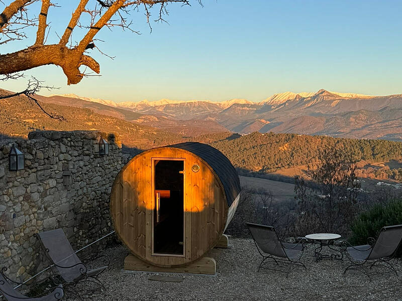 Das Anwesen „Le Vieil Aiglun“ besteht aus insgesamt 3 Landhäusern, die auf den Überresten eines Dorfes aus dem 15. Jh. komplett neu aufgebaut wurden. Und gerade das macht den Charme und die besondere Atmosphäre dieses Anwesens aus. Ursprünglichkeit kombiniert mit zahlreichen Annehmlichkeiten, machen diesen Ort zu einer kleinen Wohlfühl-Oase, die sich für Paare, Familien und Freunde gleichermaßen eignet. Entspannen Sie bei einem Bad im ganzjährig geöffneten Panorama-Pool, genießen Sie Erholung in der Außenfasssauna (gegen Aufpreis) mit atemberaubendem Ausblick, ziehen Sie sich mit einem guten Buch in den idyllischen Garten zurück oder lassen Sie Ihre Gedanken einfach in die Ferne schweifen. Zahlreiche gemütliche Ecken mit Hängematte, Liegen und Sitzmöglichkeiten stehen Ihnen zur Verfügung. Für aktive Erholung sorgen außerdem ein Bouleplatz, eine Tischtennisplatte sowie Badmintonschläger, die Sie gerne ausleihen können. Bitte beachten Sie: der Pool, die Außenfasssauna, Bouleplatz und Tischtennisplatte stehen allen Gästen der Ferienhäuser und der Gästezimmer zur Verfügung. Der Freizeitbereich liegt ein wenig abseits der Häuser, so dass die Privatsphäre eines jeden nicht gestört wird.