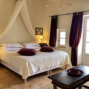 Das Anwesen verfügt über vier Gästezimmer (3 Zimmer für jeweils 2 Personen, 1 Zimmer für 2-4 Personen) und drei Ferienhäuser (für 2-5 Personen). Die Gästezimmer befinden sich in einem typisch provenzalischen Steinhaus mit wundervollem Blick auf die Umgebung und die Alpen. Schon am Morgen werden Sie mit einer wundervollen Aussicht auf die Natur verwöhnt. Die Zimmer wurden von Ihren Gastgebern liebevoll und gemütlich eingerichtet und überzeugen mit charmanten Details und Komfort. Jedes Gästezimmer verfügt über ein großes Doppelbett, welches auf Wunsch gerne in 2 Einzelbetten unterteilt werden kann. Zu jedem Gästezimmer gehört ein Badezimmer, welches mit Badewanne oder Dusche ausgestattet ist. Drei der Gästezimmer verfügen über einen Mini-Balkon bzw. eine kleine Außensitzgelegenheit. Eine schöne Möglichkeit, um sich ganz privat zurückzuziehen! In dem Gästehaus haben Sie freien Zugang zu den Gemeinschaftsräumen. So können Sie sich gerne in der voll ausgestatteten Küche einen kleinen Snack zubereiten und diesen im gemütlichen Esszimmer einnehmen. Oder genießen Sie ruhige Abendstunden im Wohnzimmer mit Fernseher und offenem Kamin. Morgens werden Sie mit einem leckeren Frühstück verwöhnt und können genussvoll in den Tag starten.